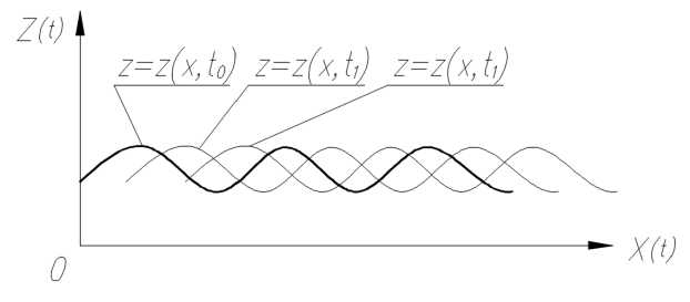 Если рассмотреть в качестве исходного профиля кривой z = z(x, t) синусоиду, получим: