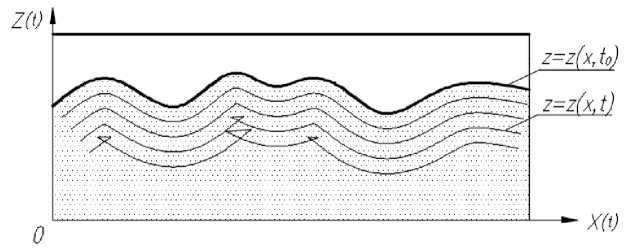 Рис. 1. Кинематика роста профиля поверхности
