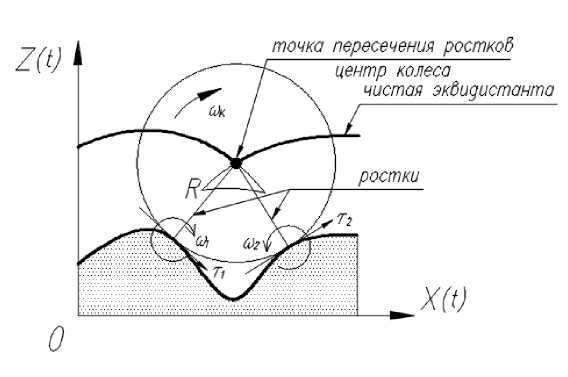 Назовем траекторию точки «ростком» (рис. 2). Координаты точки, принадлежащей «ростку», должны удовлетворять уравнениям: