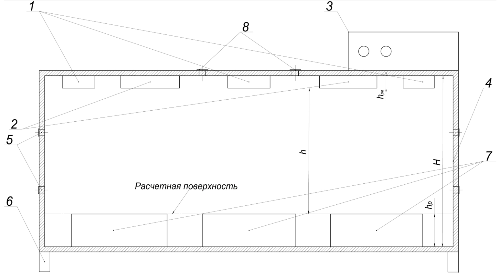 Округляем число светильников в большую сторону, принимаем N = 5 шт. Рассчитаем расстояние LСВ от крайних рядов светильников до стенок устройства [9]:
