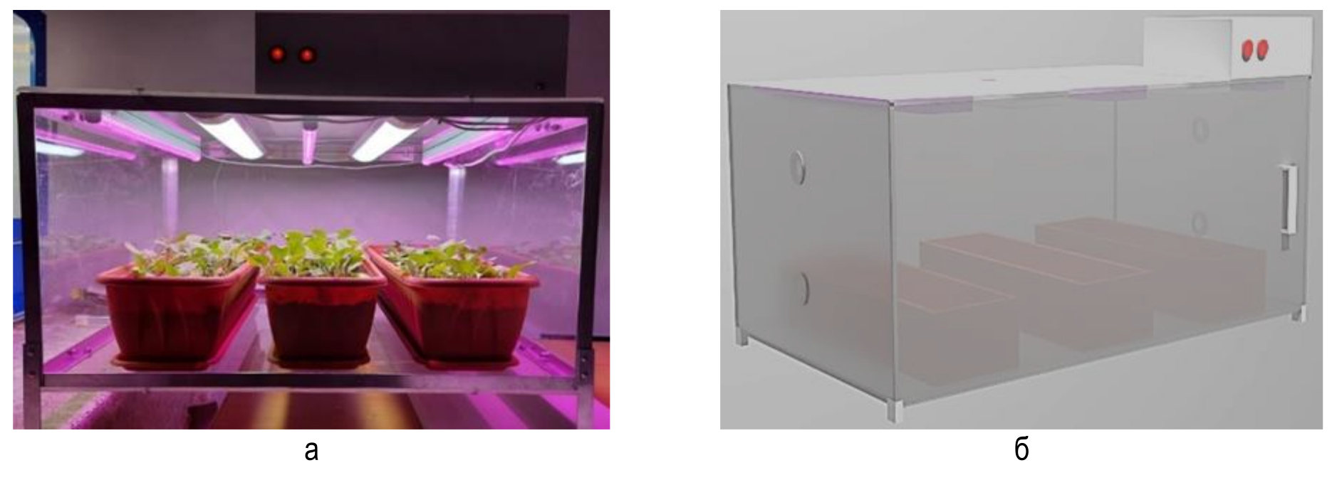 Рис. 2. Фитоустановка: а - общий вид; б - 3D модель