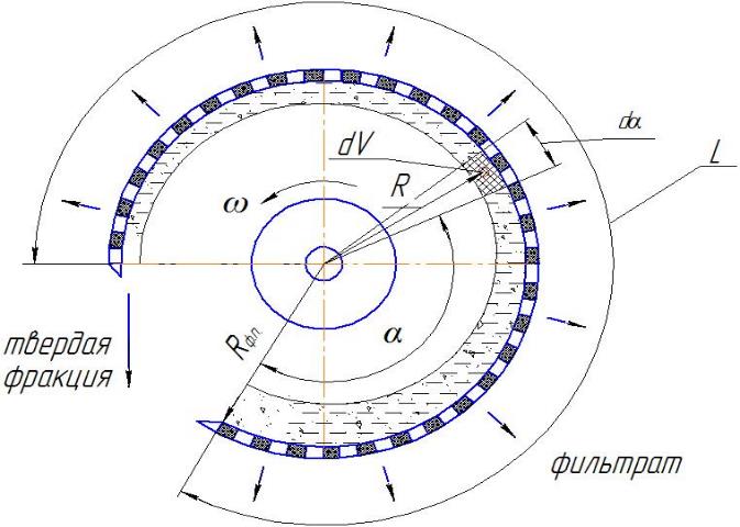 Рис. 3. Схема процесса фильтрования в декантере
