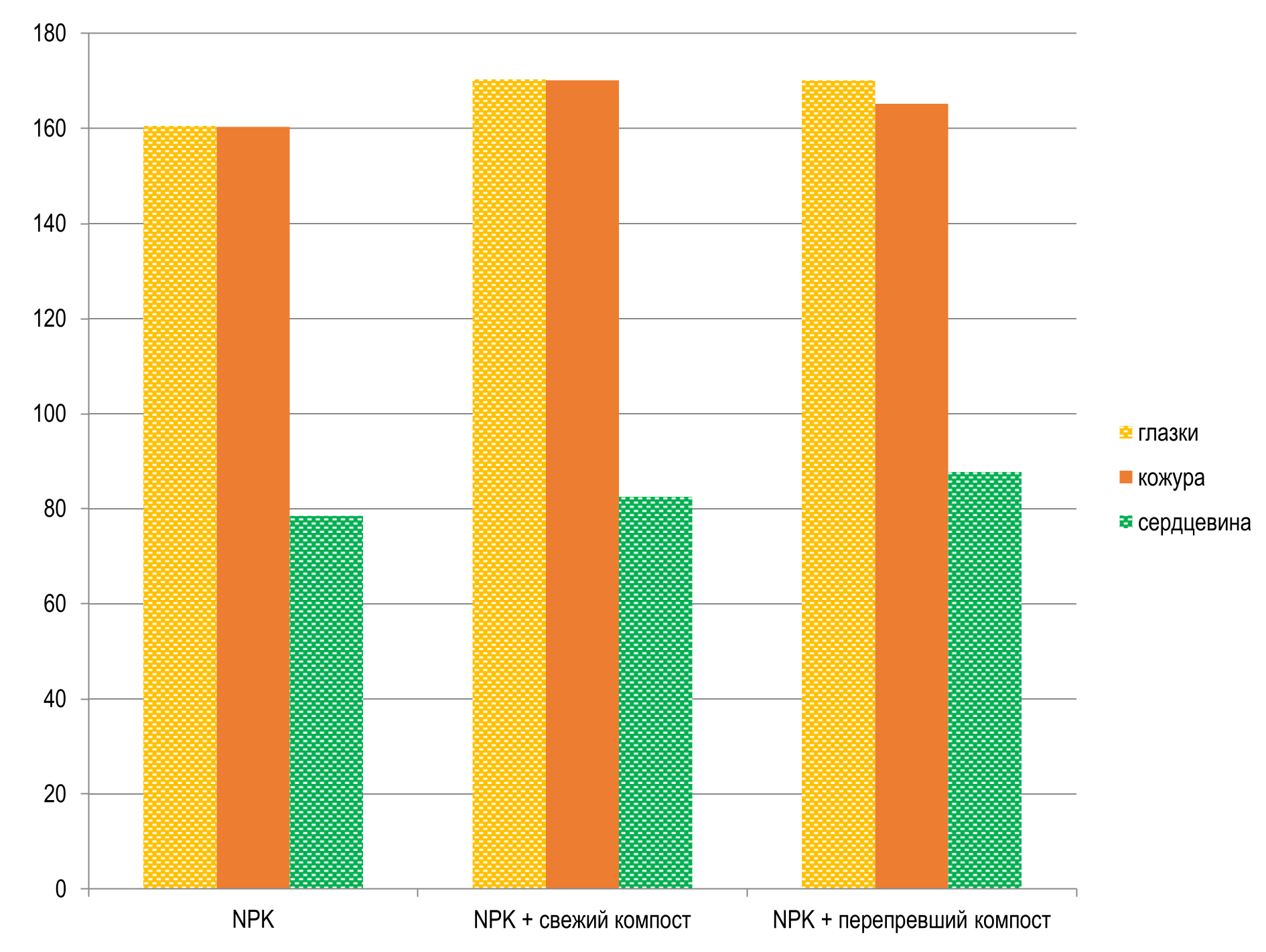 2. | NPK + свежий компост | 44,74 | 6,4 | 80,5 | 68,4 | 21,2 | 10,4 | 89,6 |