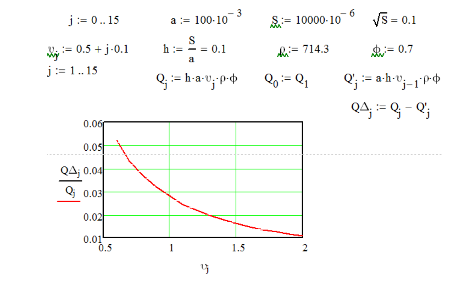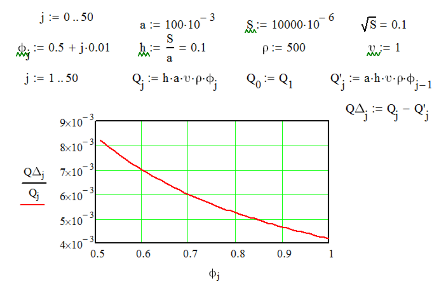 Для примера рассмотрим влияние погрешности (1 мм) размера выгрузного окна при различной настройке положения заслонки при постоянстве остальных показателей. Площадь выгрузного отверстия в численном опыте постоянна и составляет 10000 мм². Изменяется высота отверстия h в интервале от 32 до 316 мм. Из условия ширины отверстия, мм: , найдем соответствующий интервал изменения ширины (в порядке уменьшения для опыта): от 316 до 32 мм.