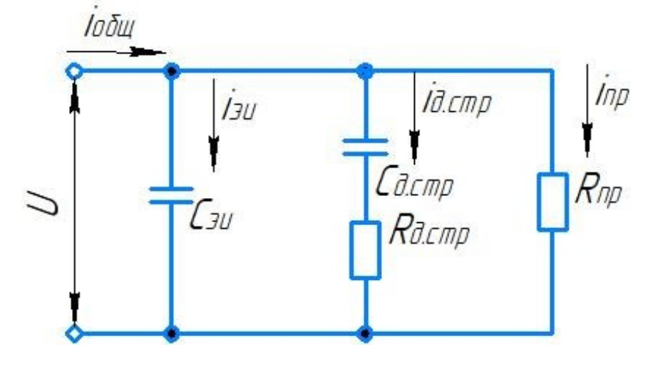 2. Дипольная и структурная поляризация относятся к процессам медленной поляризации, поэтому расчет ёмкости Сд.стр и Rд.стр сопротивления, обусловленных дипольной и структурной поляризацией, будет также производиться в целом для этих двух процессов.