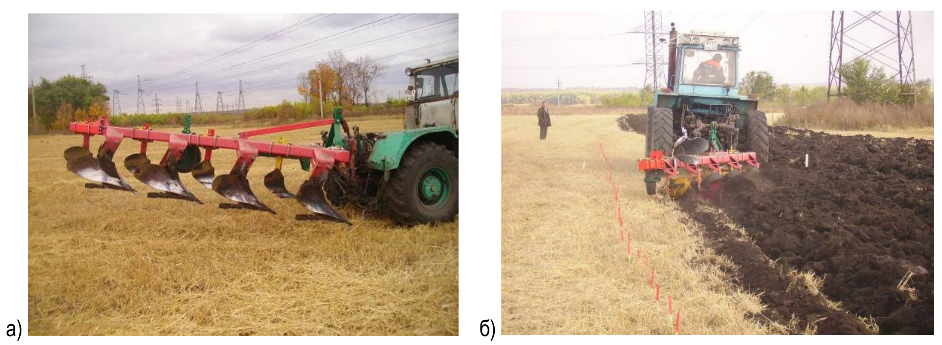 Для проведения исследований комбинированный плуг и серийный плуг ПНЯ-4-42 агрегатировались с тракторами Т-150К и ХТЗ-16131 (рис. 1).