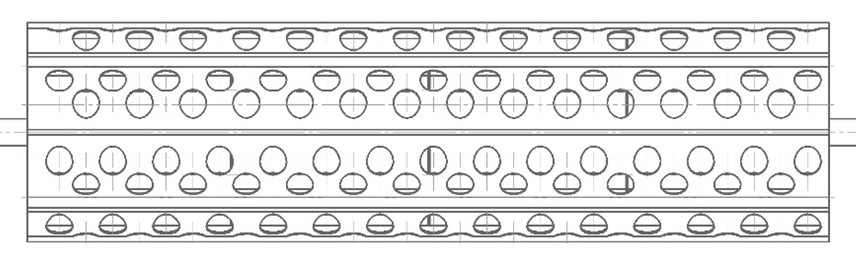Отверстия в желобах выполнены в шахматном порядке (рисунок 2), а их количество можно рассчитать по следующей формуле: