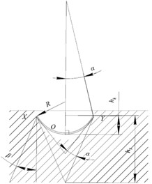 При взаимодействии жёлоба с почвой в ней формируется углубление по дуге XY (рисунок 3), образованное непосредственно формой уплотняющего элемента (жёлоба). Его высота:
