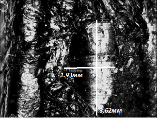 Примеры замера лунок износа образцов приведены на рис. 6, 7.