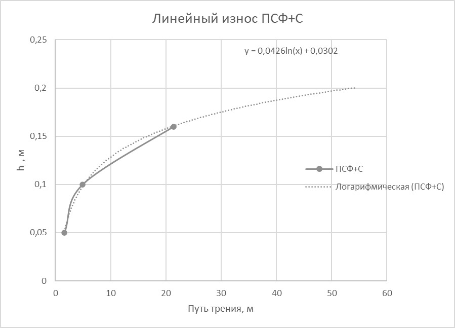 По результатам эксперимента построена математическая модель линейного износа ПСФ+10%С.