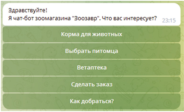 Цель — разработка чат-бота, предоставляющего информационную поддержку в вопросах кормления, лечения и ухода за животными.