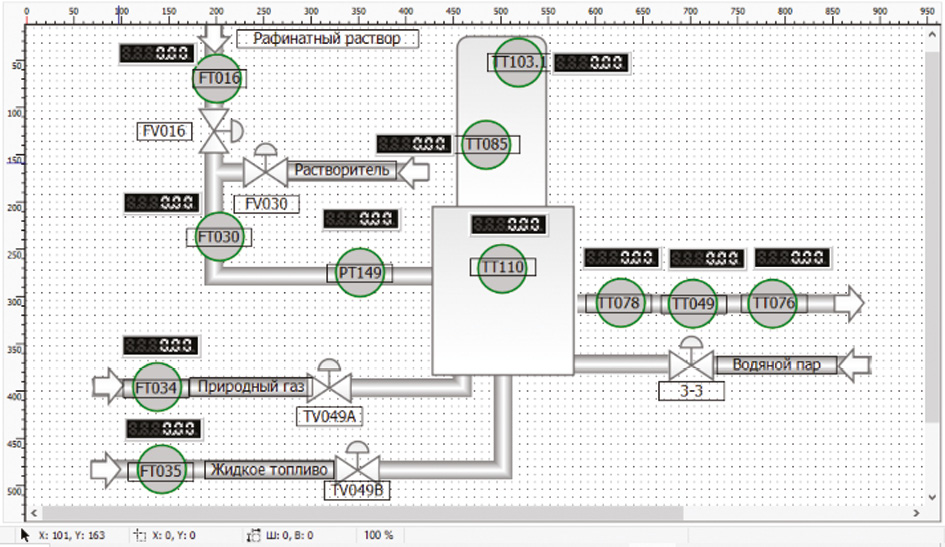 Рис. 2. Мнемосхема нагрева рафинатного раствора в печи установки селективной очистки масел