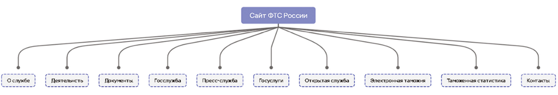 Рис. 1. Первый уровень структуры официального сайта ФТС России